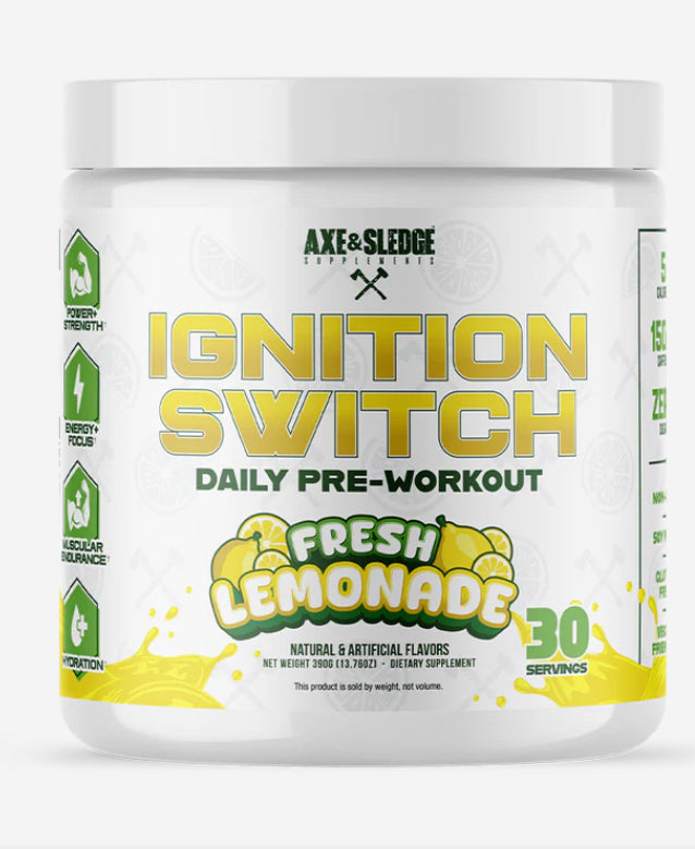 Ignition Switch by Axe & Sledge is a clean, versatile pre-workout formula designed to deliver energized, focused, and high-endurance training sessions — without overwhelming your system with excessive stimulants.